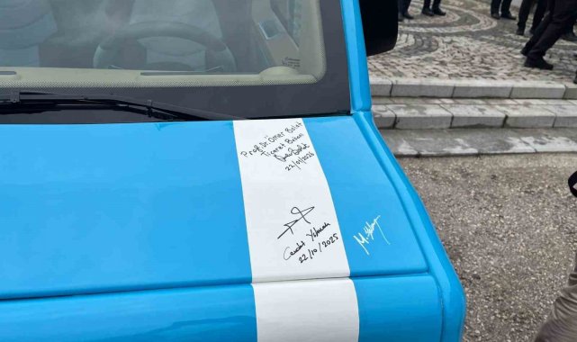 Yerli üretim Volta V1 model elektrikli araç hakkında bilgi alan Bakan Bolat, aracı imzaladı.