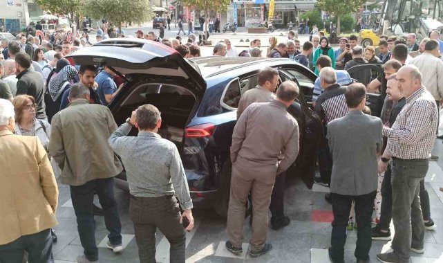 Yerli ve milli araç Togg Devrek sokaklarında tur attıktan sonra Cumhuriyet alanına park edilen araçla fotoğraf çektirmek için vatandaşlar sıraya girdiler.