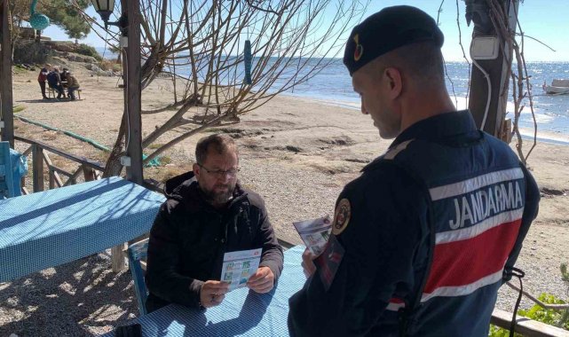 Aydın'ın Söke ilçesindeki karina bölgesine giden jandarma ekipleri, yerli ve yabancı turistleri çevre koruma konusunda bilgilendirdi.