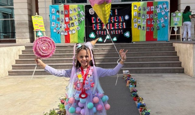 Türkiye ve Romanya iş birliğinde yürütülen "Yeşil Adımlar Projesi" kapsamında İzmir'de düzenlenen etkinlikte, öğrenciler atık malzemelerden tasarladıkları kıyafetleri sergiledi.
