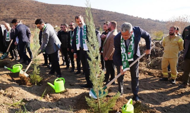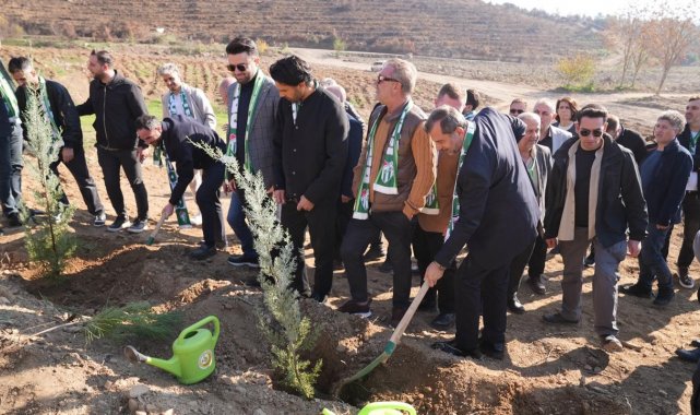 Bursaspor yönetimi ve futbolcuları, Gürsu'da geçen temmuz ayında çıkan orman yangınlarında zarar gören alanlara fidan dikimi gerçekleştirdi.