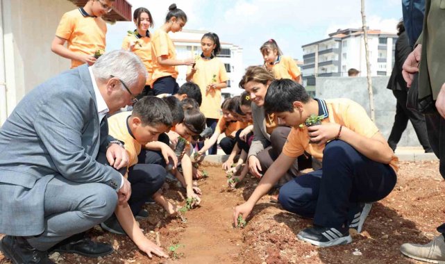 Bayram, "Bugün Sevinç Göymen Ortaokulu'nda öğrencilerimizle birlikte önce sebze fidelerini toprakla buluşturduk, ardından da kendi sabunlarını üretebilecekleri eğitici bir etkinlik gerçekleştirdik. Bu projeyle çocuklarımıza yalnızca doğayı korumayı değil, aynı zamanda üreterek yaşamın bir parçası olmayı da öğretmeyi hedefliyoruz" dedi.
