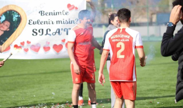 Yapılan evlilik teklifiyle yeşil sahada renkli anlar yaşandı.