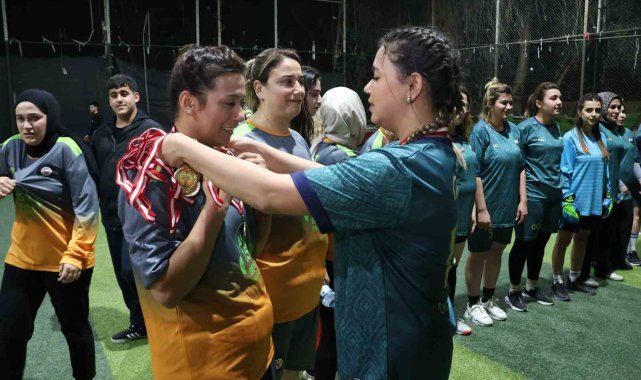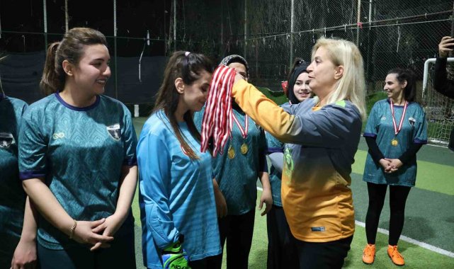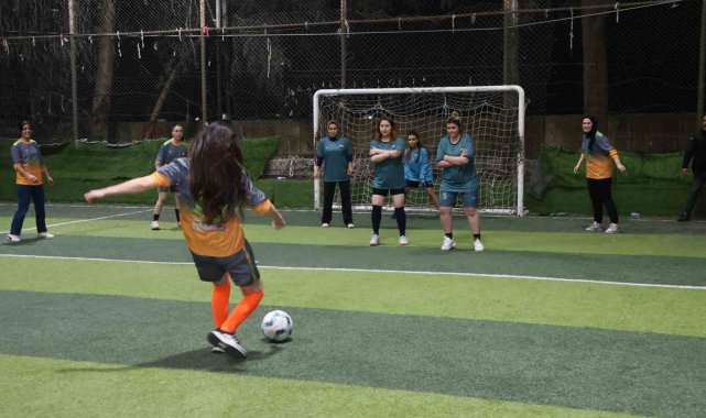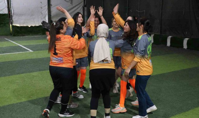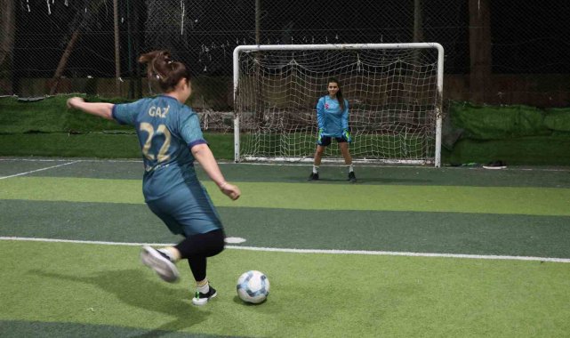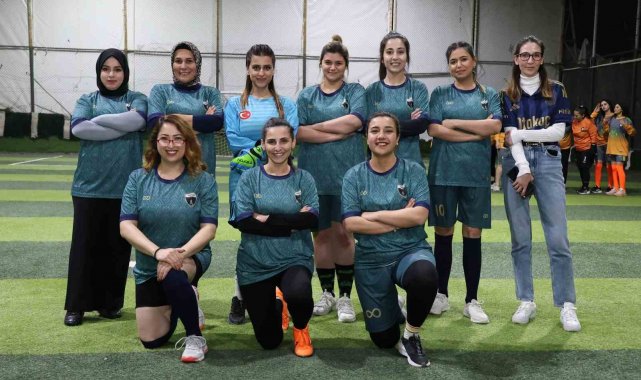 Yeşil sahadaki performanslarıyla erkeklere taş çıkaran kadınlar, halı saha maçında doyasıya eğlendiler