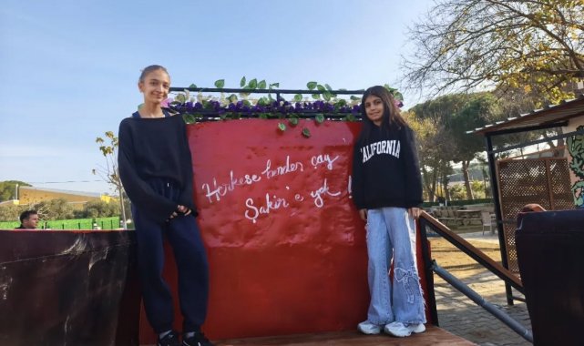 Germencik Belediyesi işletmesi Sini Kahvaltı Evi bahçesinde yerini alan kırmızı Çiçek Abbas minibüsü, üzeri çiçeklerle süslenmiş görünümü ve içine yerleştirilen basamaklarla minik ziyaretçiler için güvenli bir oyun alanı haline getirildi.