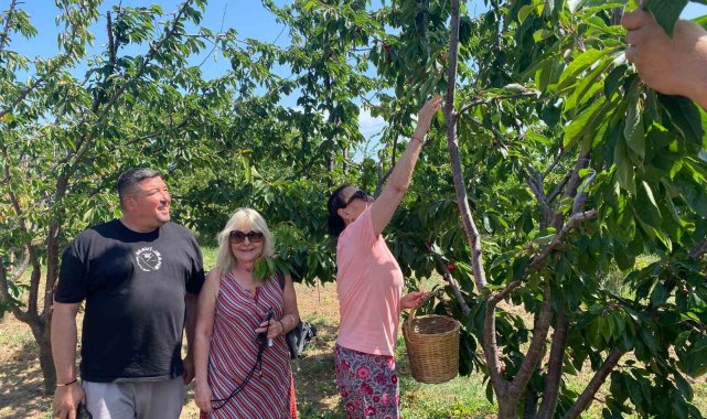 Kirazlı'da köylü kadınların geleneksel kıyafetlerini giyen Perihan Savaş, bahçede üreticilerle birlikte kiraz topladı, meyveleri tek tek inceledi. Samimi tavırlarıyla ilgi gören sanatçı, köy kahvesinde vatandaşlarla çay içip sohbet etti. Hayranlarının fotoğraf isteklerini de geri çevirmeyen Savaş, bol bol hatıra pozları verdi.