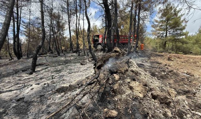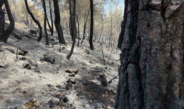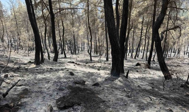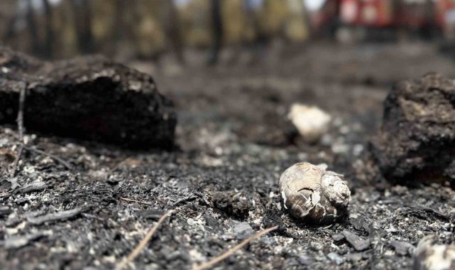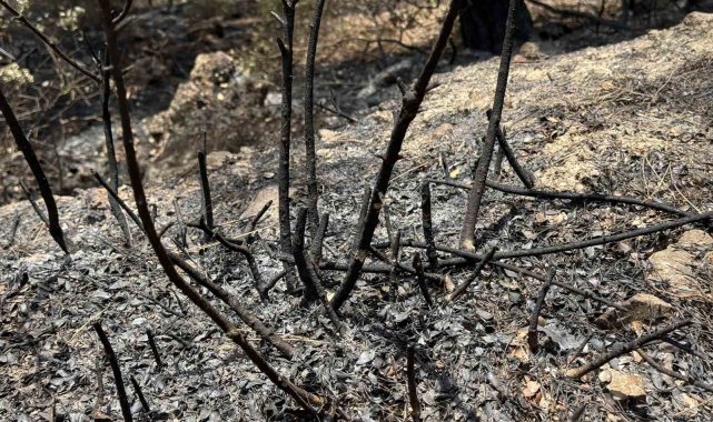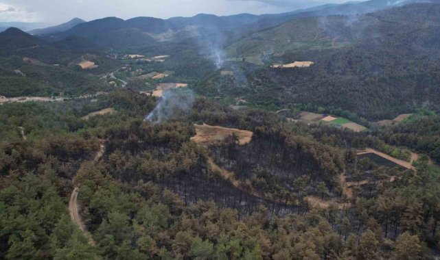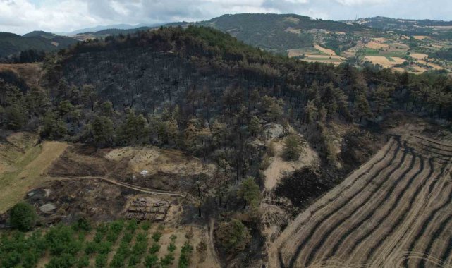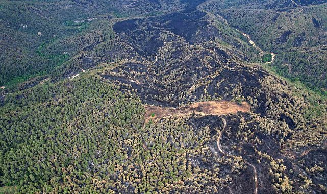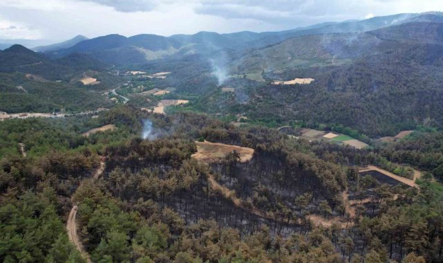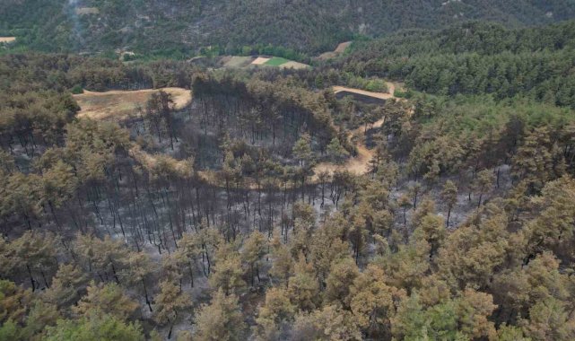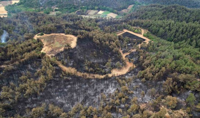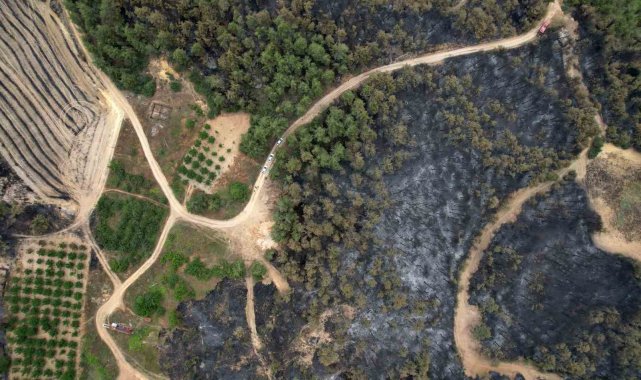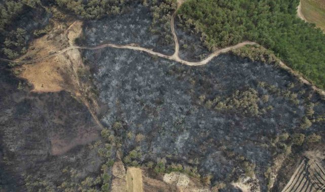 Yeşilin tonlarının yanarak siyaha büründüğü alanlar havadan da görüntülendi