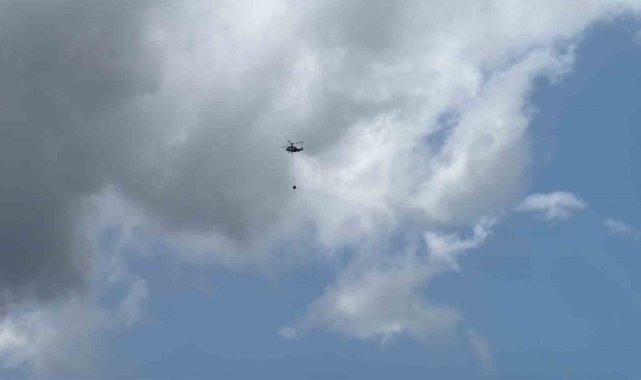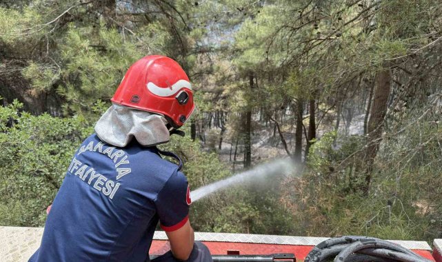 Sakarya'nın Taraklı ilçesinde çıkan yangını söndürme ve soğutma çalışmaları devam ediyor. Yeşilin tonlarının yanarak siyaha büründüğü alanlar havadan da görüntülendi.
