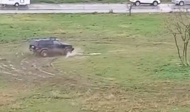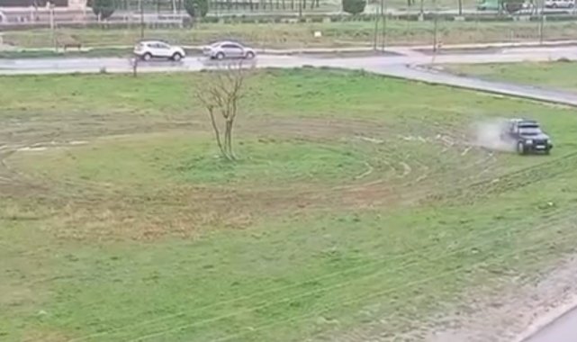 Bursa'nın Nilüfer ilçesinde bir otomobil sürücüsü, yeşillik alanda dakikalarca drift yaptı. O anlar ise bir vatandaşın cep telefonu kamerasına yansıdı.