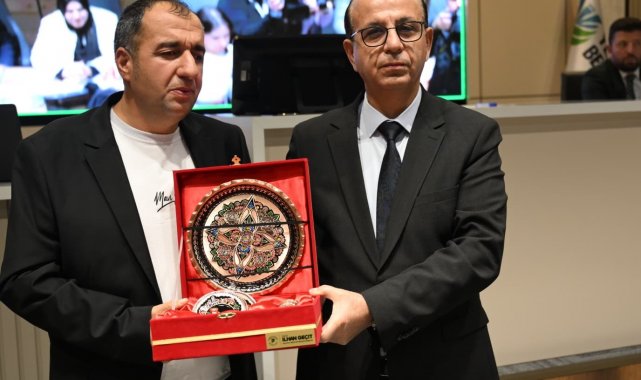 Başkan Geçit konuşmasından sonra CHP'nin Görme Engelli Meclis Üyesi Ali Ercan'a Meclis çalışmalarına sağladığı katkılardan dolayı teşekkür edip, günün anısına hediye takdim etti.