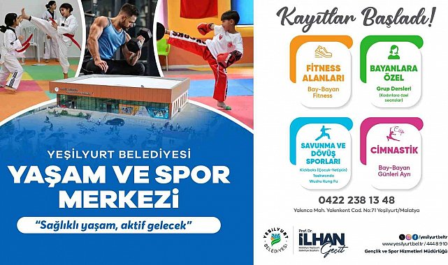 Yeşilyurt Belediyesi, toplumun her kesimini sporla buluşturmak ve sağlıklı yaşam kültürünü yaygınlaştırmak amacıyla önemli bir projeyi daha hayata geçiriyor. "Sağlıklı yaşam, aktif gelecek" sloganıyla hizmet veren Yeşilyurt Belediyesi Yaşam ve Spor Merkezi, her yaşa ve her seviyeye uygun spor imkanlarıyla kapılarını vatandaşlara açtı. Merkezde spor yapmak isteyenler için kayıtlar başladı.