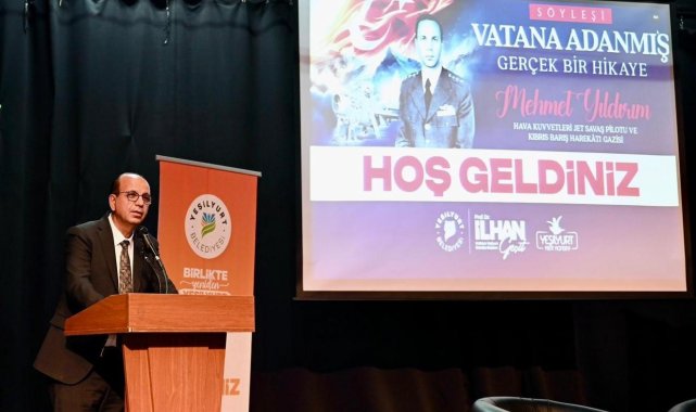 Kıbrıs Barış Harekatı Gazisi ve Hava Kuvvetleri Jet Savaş Pilotu Mehmet Yıldırım, Yeşilyurt'ta düzenlenen 'Vatana Adanmış Gerçek Bir Hikâye' söyleşisinde yaşadıklarını anlatarak vatan sevgisi ve fedakârlığın önemine dikkat çekti.