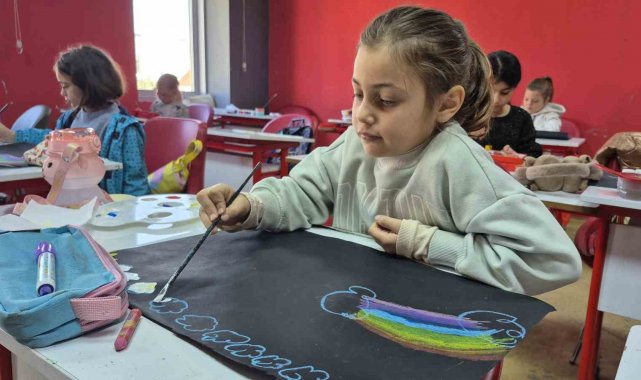 Resim atölyesine katılan çocuklardan Toprak Eymen Kaya da "Burada kurslar var, arkadaşlarımla birlikte çok eğleniyorum. Gençlik liderlerine çok teşekkür ediyorum" şeklinde konuştu.