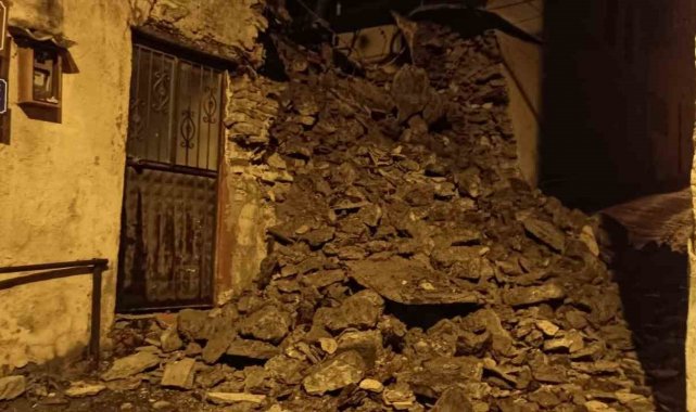 DENİZLİ (İHA) – Denizli'nin Buldan ilçesinde şiddetli yağışların ardından yıkılan 5 metrelik istinat duvarı, yolu ulaşıma kapattı.