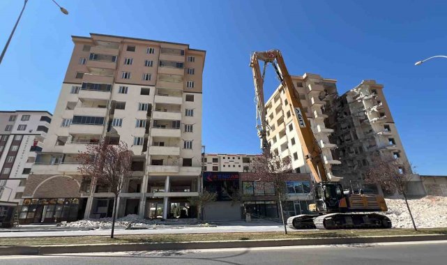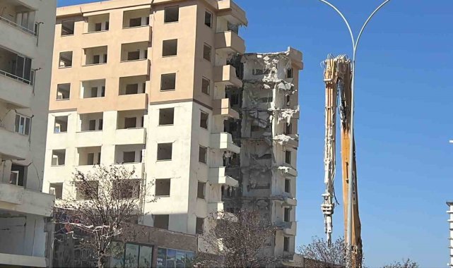 Yıkım çalışması sürüyor: Ortasında dev boşluk kalan bina dikkat çekti