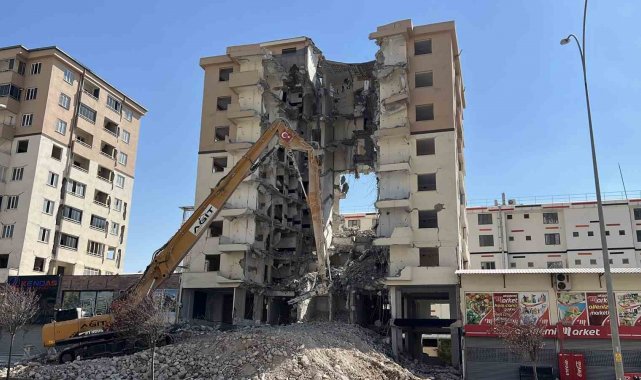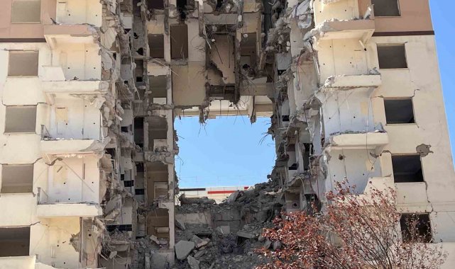 Kahramanmaraş'ta meydana gelen 6 Şubat depremlerinde hasar alan bir binanın yıkımı sırasında ortasında oluşturulan dev boşluk dikkat çekti.