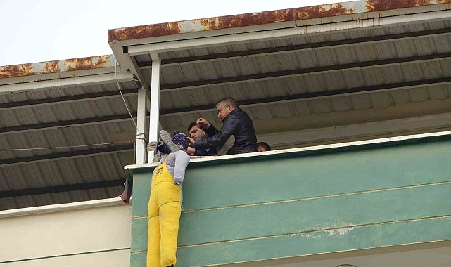 Olay, 15.00 sıralarında Yeşilyurt ilçesi Fahri Kayahan Bulvarı üzerinde meydana geldi. Edinilen bilgilere göre, 6 Şubat 2023 depremlerinde ikamet ettiği 7 katlı ağır hasarlı binanın yıkım kararına ihtiraz eden apartman sakini bir kadın, çıktığı teras katın demir ayaklarına kendini iple bağlayarak intihar girişiminde bulundu.