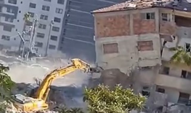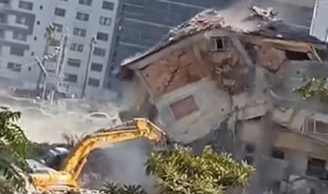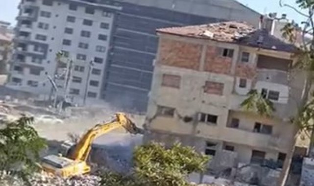 Kahramanmaraş merkezli depremlerde büyük yıkımın yaşandığı Hatay'da mahkeme süreci tamamlanan binalar yıkılmaya devam ediyor. Depremin vurduğu Defne ilçesi Sümerler Mahallesi'nde mahkeme süreci tamamlanan 5 katlı bina, iş makinesinin darbesiyle kontrollü olarak yıkıldı. 5 katlı binanın kontrollü olarak yıkan operatörün binanın altında kalmaktan saniyelerle kurtulduğu anlar cep telefonu kamerasıyla saniye saniye görüntülendi. Görüntülerde; iş makinesinin boomun yıktığı binanın altından son anda kurtulduğu ve kontrollü yıkım anları kameraya yansıdı. 5 katlı binanın kontrollü yıkılma sırasında herhangi bir olumsuzluk yaşanmadı.