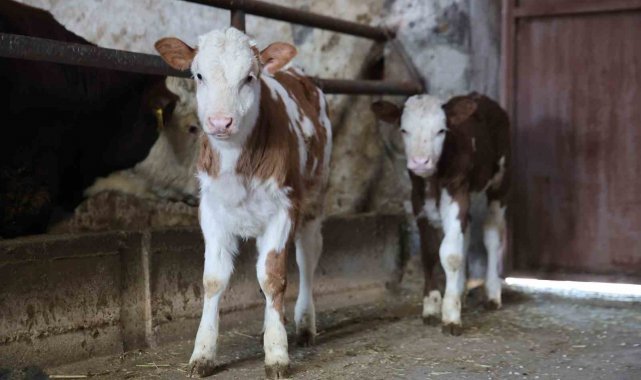 Yıl bitmeden gelen çifte mutluluk: Üreticinin ikiz buzağı sevinci