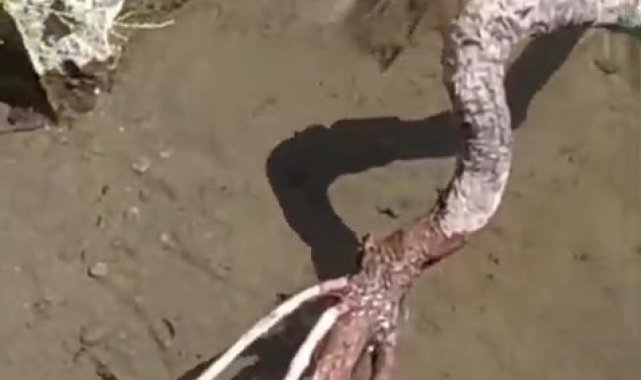 Yılan, avladığı balığı çıkan sesle bıraktı