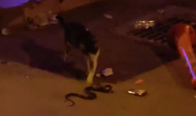 Doğal yaşamın şehir merkezinde dahi etkisini gösterdiği olayda, bir kediyle yılanın karşı karşıya geldiği anlar çevredeki vatandaşların dikkatini çekti. Kısa süreli gerilimli anların yaşandığı kavga, cep telefonu kamerasıyla saniye saniye kaydedildi. Kedinin yılanı uzaklaştırmaya çalıştığı görülen görüntülerde, yılanın da kendini savunduğu dikkat çekti.