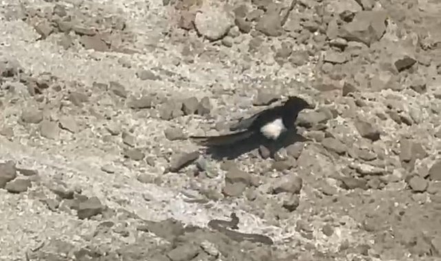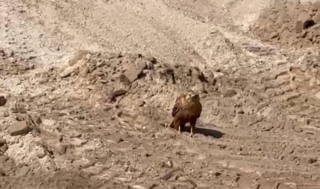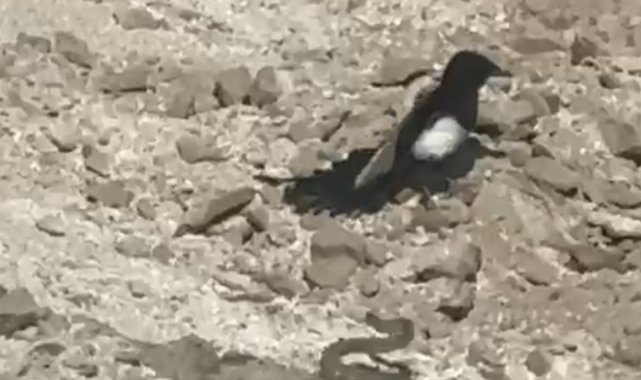 İşçiler tarafından çekilen görüntülerde yılanın açık alanda hareket ettiğini fark eden bir karga ve ardından bir kartal, havadan iniş yaparak av peşine düştü.