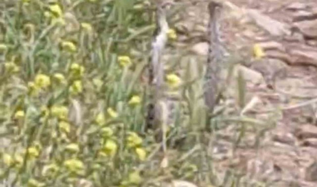 Çanakkale'de havaların ısınmasıyla birlikte ortaya çıkan yılanların dansı, cep telefonu kameralarına yansıdı.