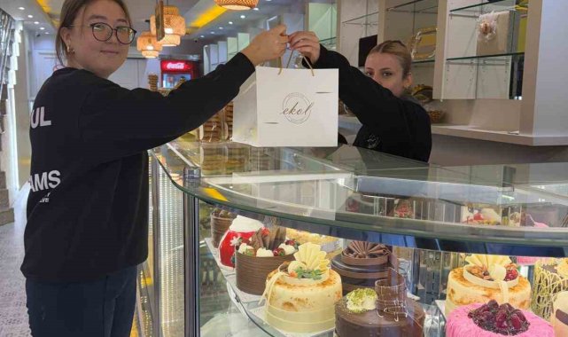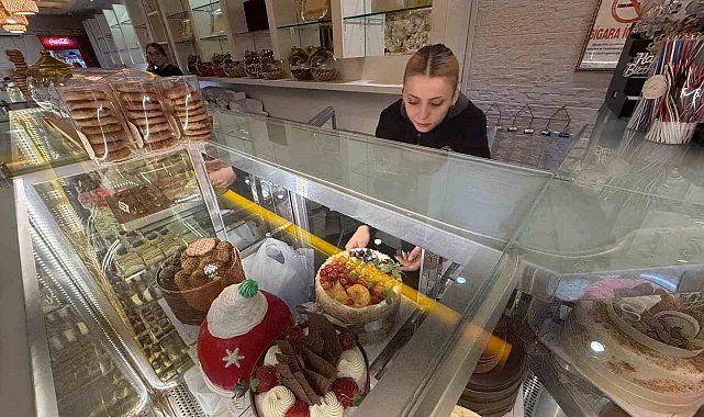 Yeni Mahalle Atatürk Bulvarı'nda hizmet veren Ekol Pastanesi'nin sahibi, girişimci genç kadın Begüm Tıraş, yılbaşına özel hazırlanan pastaların içine altın yerleştirerek müşterilerine sürpriz yapmaya hazırlanıyor.