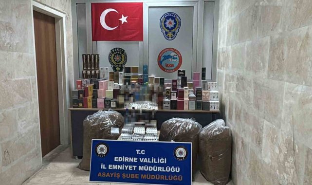 Edirne'de Dilaverbey Mahallesi Cumhuriyet Caddesi üzerinde bulunan bir meyve ve sebze deposuna İl Emniyet Müdürlüğü'ne bağlı resmi devriye görevini sürdüren polis ekipleri, kaçak ürün bulundurulduğu bilgisi üzerine operasyon başlattı. Yapılan operasyonla depoya giren ekipler, yılbaşı öncesi piyasaya sürülmek istendiği değerlendirilen meyvelerin arasına gizlenmiş kaçak parfüm, kaçak tütün, kaçak içki, çok sayıda uyuşturucu hap ve onlarca kaçak makaron ele geçirdi.