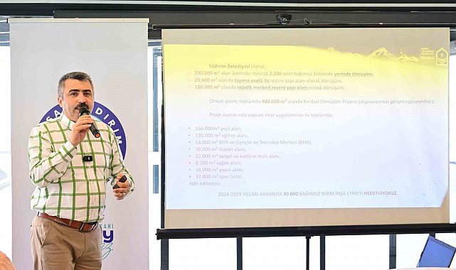 Yıldırım Belediyesi'nin kentsel dönüşüm alanında Bursa'nın en tecrübeli kurumu olduğunu ve örnek teşkil ettiğini vurgulayan Başkan Yılmaz, "Bu başarının temelinde ise ortak akıl ve istişare kültürü yatıyor. Projeye başlarken uzlaşma oranını en üst seviyeye çıkarmaya çalışıyoruz. Yine kent dinamikleri, akademik odalar, sivil toplum kuruluşları, sektör temsilcileriyle istişare içerisinde kararlar alıp uyguluyoruz. Bitişik nizamdan ayrık nizam yapılara geçerek yeni bir kültür oluşturuyoruz. Bu projeleri belirlerken de bölgesel özellikleri ve beklentileri esas alıyoruz. Bugüne kadar 190 bin metrekare alandaki 2 bin 200 bağımsız bölümde yerinde dönüşüm 29 bin 400 metrekare alanda ise taşıma usulü dönüşüm gerçekleştirdik. Bu toplantıyı bundan dolayı çok önemsiyor ve yeni iş birliklerine temel teşkil etmesini umuyorum" diye konuştu.