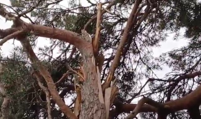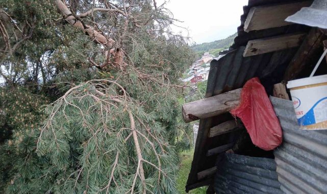 Yıldırım çarpan ağaç yıkılıp ağılın üzerine düştü, hayvanlar telef olmaktan son anda kurtuldu
