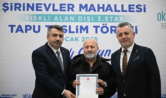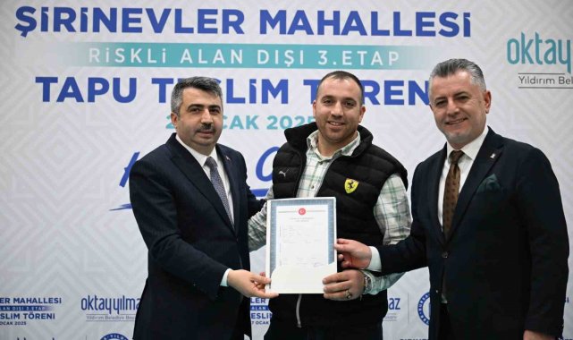 Naim Süleymanoğlu Spor Kompleksi'nde düzenlenen Şirinevler Mahallesi 3. Etap Tapu Teslim Töreni'ne Yıldırım Belediye Başkanı Oktay Yılmaz, Büyükşehir Belediyesi Başkan Vekili Recep Çohan, AK Parti İl Başkan Vekili Cem Kürşad Hasanoğlu, AK Parti İlçe Başkanı İrfan Akkaya ve vatandaşlar katıldı.