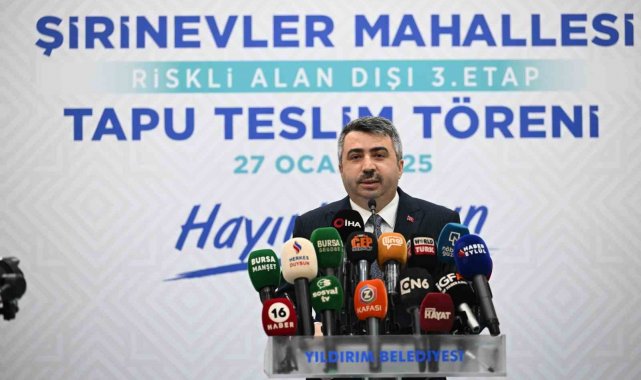 Yıldırım'da tapu seferberliği devam ediyor. 2008 yılından bu yana Şirinevler Mahallesi'nde açılan davalar sonucu yıllardır süregelen ruhsat verememe problemini ortadan kaldıran Yıldırım Belediyesi, ilçenin doğu vitrini olan bu bölgede ruhsatlı yapılaşmayı mümkün kıldı. Şirinevler Mahallesi'nde riskli alan ve riskli alan dışı olmak üzere toplamda bin 60 vatandaşa tapularını teslim eden Yıldırım Belediyesi, düzenlediği törende 960 hak sahibini daha tapularına kavuşturdu.