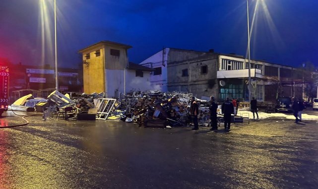 Yıldırım düşen hurdalığın bahçesinde yangın çıktı