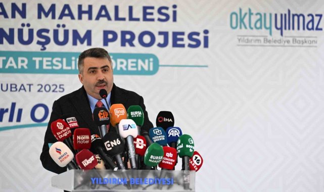 Mimarsinan Mahallesi'nde bölgeye örnek olacak projenin 1 yıl gibi kısa bir sürede tamamlandığını söyleyen Yıldırım Belediye Başkanı Oktay Yılmaz, "Bugün Yıldırım'ın geleceğine hizmet eden vatandaşlarımızı sağlıklı, huzurlu, modern bir yaşam sunan önemli bir projeyi daha bitirmenin mutluluğunu yaşıyoruz. Yaklaşık 1 yıl önce Çevre Şehircilik ve İklim Değişikliği Bakanlığı tarafından rezerv alan ilan edilen 6 bin metrekarelik bu adada kentsel dönüşüm temel atma töreni gerçekleştirmiştik. 1 yıl sonra da eserimiz ortada. Bu sürece destek veren hak sahiplerini kutluyorum. Bu adada 130 konut yer alıyor, 2 bin 118 metrekare işyeri, 600 metrekare de park alanı kazandırmış oluyoruz" dedi.