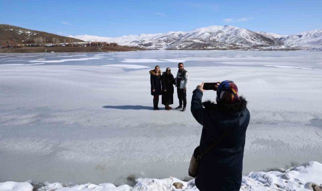 Yıldız gölü dondu, meraklıları üzerinde yürüyüp fotoğraf çektirdi