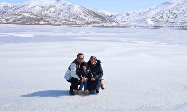 Çeşitli illerden kış tatili için Sivas'a geldiklerini belirtenler buz tutan gölün yüzeyinde yürüme fırsatı bularak tarifsiz bir deneyim yaşadıklarını dile getirdiler.