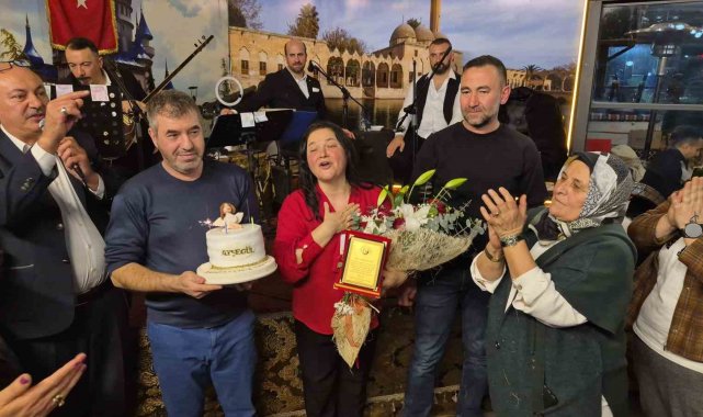 Eskişehir'de faaliyet gösteren İlmek İlmek Bin Minik Yürek Yardımlaşma Grubu gönüllüsü Ayşegül Bozbaş'a 'Yılın En Başarılı Hizmet Ödülü'nü aldığı için hayırsever arkadaşları düzenlenen programla sürpriz yapıldı.