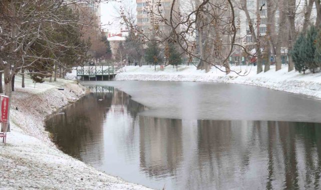 Kentin kar manzarası ve donan Porsuk Çayı havadan dron ile görüntülendi.