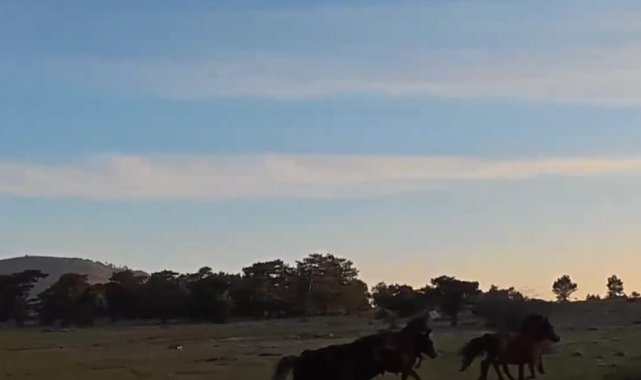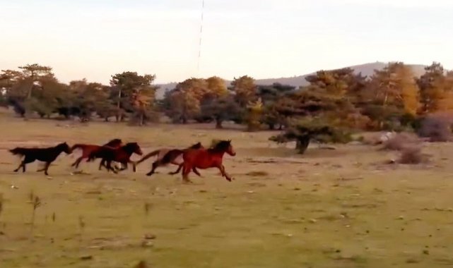 Yılkı atları doğada özgürce koşuyor
