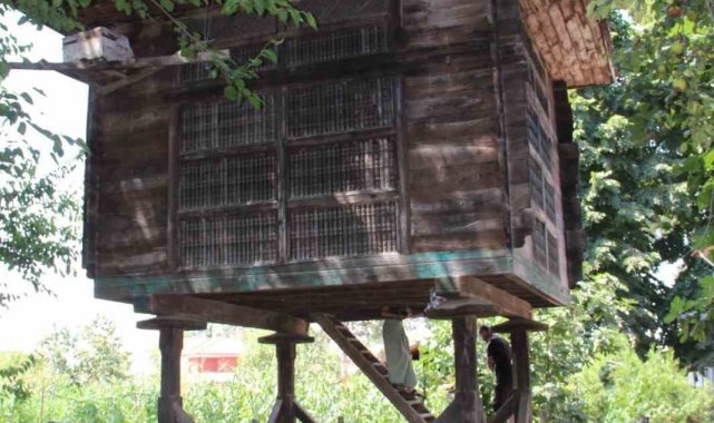 Samsun'un Çarşamba ilçesi Kirazlıkçay Mahallesi'nde yaklaşık 150 yıllık geçmişe sahip olan ve "serendi" adıyla bilinen ahşap depo, hem doğal görünümü hem de erzak saklama özelliğiyle zamana meydan okuyor.