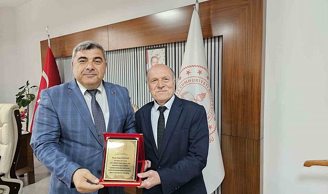 Afyonkarahisar İl Milli Eğitim Müdürü Miraç Sünnetci, Emir Murat Özdilek Turizm Mesleki ve Teknik Anadolu Lisesi Müdürü Sami Solmaz'ı makamında kabul ederek emekliliğini tebrik etti.