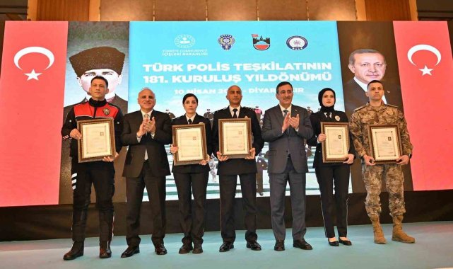 Bir dizi ziyaretlerde bulunmak üzere Diyarbakır'a gelen Cumhurbaşkanı Yardımcısı Cevdet Yılmaz, bir otelde düzenlenen 10 Nisan Türk Polis Teşkilatı'nın kuruluşunun 181'inci yıl dönümü dolayısıyla düzenlenen programa katıldı. Kur'an-ı Kerim tilavetinin ardından başlayan programda konuşan Cumhurbaşkanı Yardımcısı Yılmaz, köklü bir devlet geleneğinin içinden süzülerek bugünlere gelen Türk Polis Teşkilatının, 10 Nisan 1845'te atılan modern temelleriyle milletin huzur ve güvenliğinin teminatı olduğunu ifade etti. Osmanlı'dan cumhuriyete uzanan bu süreklilik içinde polis teşkilatının, değişen şartlara uyum sağlayarak kurumsal yapısının her dönem daha da güçlendiğini vurgulayan Cumhurbaşkanı Yardımcısı Yılmaz, "Tarihimizin en kritik eşiklerinde, özellikle milli mücadele yıllarında üstlendiği sorumluluklarla bu milletin yürüyüşüne eşlik eden emniyet teşkilatımız, cumhuriyetle birlikte hukuk devleti anlayışı çerçevesinde daha sağlam bir zemine kavuşmuştur. Bugün Türk polisi, sahip olduğu tecrübe, yetişmiş insan kaynağı ve gelişen imkanlarla, değişen tehditlere karşı güçlü bir kapasiteyle hareket etmekte, milletimizin huzurunu ve kamu düzenini kararlılıkla korumaktadır. Bu köklü birikim ve güçlü irade, Emniyet Teşkilatımızı bugün de devletimizin sahadaki en etkin ve en güvenilir yapı taşlarından biri haline getirmektedir. Bu toprakları bizlere vatan kılan, bayrağımızın semalarda özgürce dalgalanmasını sağlayan asıl güç, sarsılmaz bir imanın ve sönmeyen bir vatan sevdasının neticesidir. Her bir polisimiz, bu mukaddes nöbeti devralırken canını ortaya koymakta, milletimizin bekası için bir gül bahçesine girercesine şehadete yürümeyi göze almaktadır. Bizler, bu kahramanların gösterdiği eşsiz fedakârlığın karşılığını asla tam olarak ödeyemeyeceğimizin bilincindeyiz" diye konuştu.