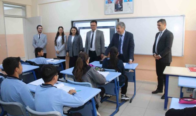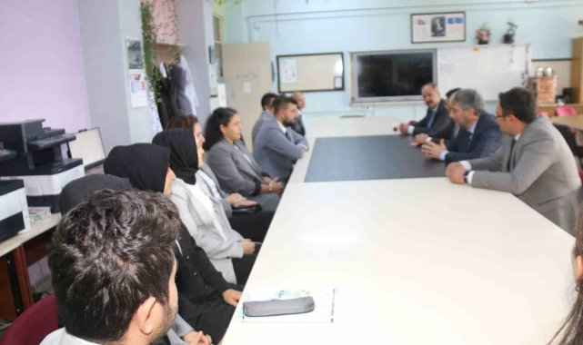 Öğretmenler odasında öğretmenlerle bir araya gelen Yılmaz, okuldaki eğitim, öğretim faaliyetlerine dair bilgi aldı.