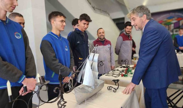Sergiyi, Mesleki ve Teknik Eğitim Hizmetleri Şube Müdürü Ali Sezer ile birlikte gezen İl Millî Eğitim Müdürü Mustafa Yılmaz, sergide yer alan çalışmaları inceleyerek okul idarecileri, öğretmenler ve öğrencilerden bilgi aldı.
