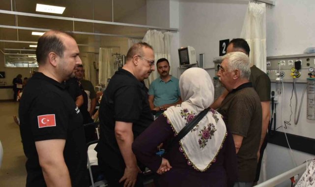 Aydın Valisi Yakup Canbolat Efeler ilçesinde zirai alanda meydana gelen yangını söndürme çalışmaları sırasında başından yaralanan Yasin Tosun'u tedavi gördüğü hastanede ziyaret ederek geçmiş olsun dileklerini iletirken, yangında toplam 15 kişinin hastanelerde tedavi altına alındığı öğrenildi.