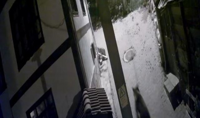 Bolu'nun Mudurnu ilçesinde mahalleye inerek yiyecek arayan ayı, köpekler tarafından kovalandı. O anlar güvenlik kamerasına yansıdı.