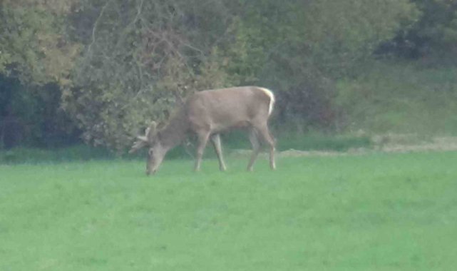 Edinilen bilgiye göre, bir vatandaş sabah saatlerinde Karacakaya köyündeki buğday tarlasında otlayan 2 geyiği fark etti. Bu anlar cep telefon kamerasıyla kayda alındı. Görüntülerde, geyiklerin köye yakın bir bölgede otladığı gözlendi. Geyiklerin tarlada bir süre otladıktan sonra ormanlık alana doğru uzaklaştığı görüldü.