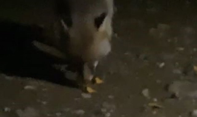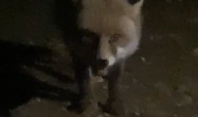 Bolu'da piknik yapan vatandaş, gece saatlerinde Gölköy Barajı Gölü etrafında yiyecek arayan tilkiyi cipsle besledi.