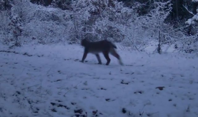 Bölgede daha önce de çeşitli yaban hayvanlarını görüntüleyen Işık'ın kurduğu fotokapan, bu kez ormanda yiyecek arayan vaşak ile iki kurt kaydetti.
